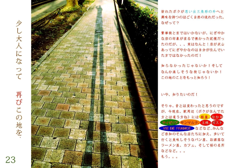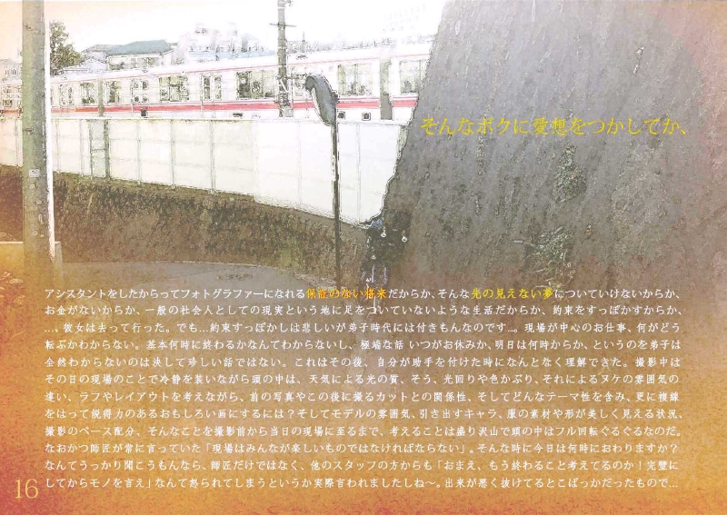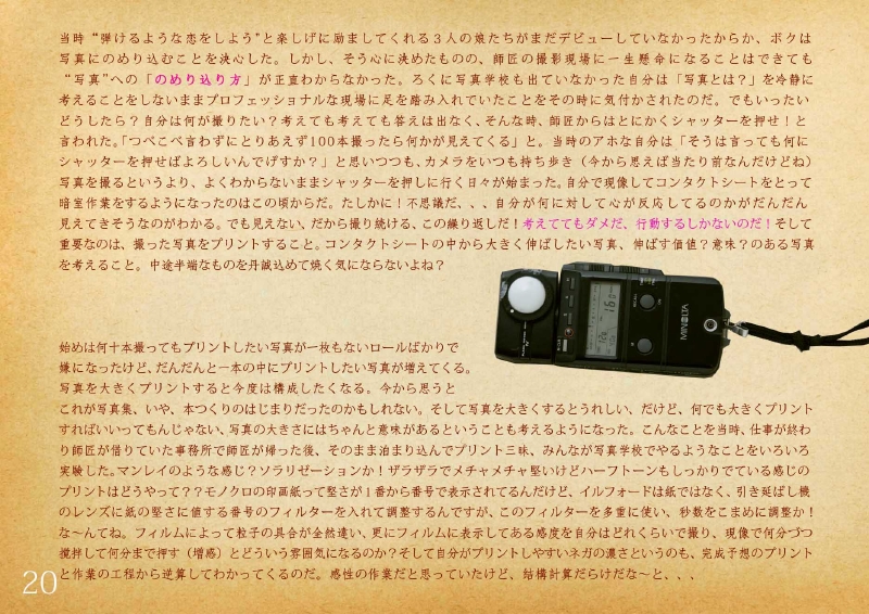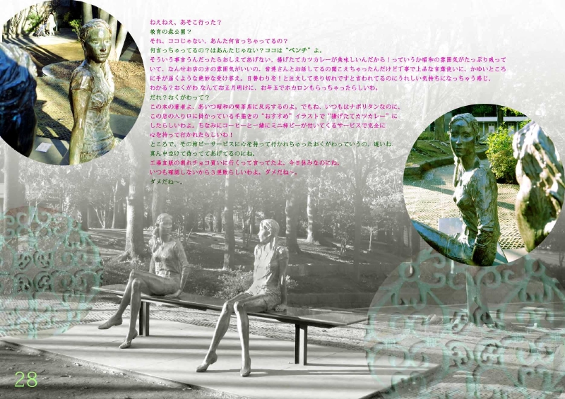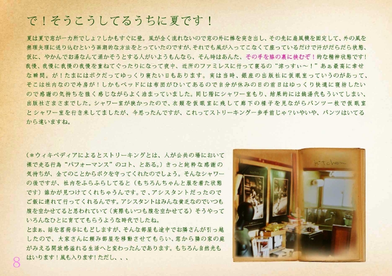 写真をクリックすると大きくなります。写真の横辺に矢印が出てくるのでそれをクリックしていくと先に進んでいきます。ではではお楽しみあれw *上にページをめくる作りで、見開いた状態になっています。なので真ん中の不自然にあいてるスペースは本のノドにあたる部分なのです。